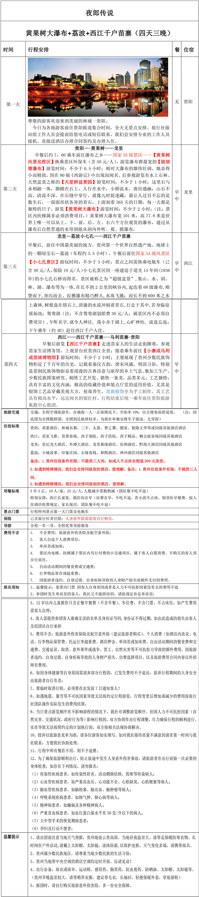 黄果树大瀑布+荔波+西江苗寨四天三晚